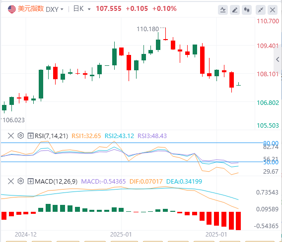 108.00附近的20天简单移动平均线(SMA)现在成为关键阻力位。未能收复该阈值可能会导致额外损失,下一个支撑区域位于107.00附近。相反,如果反弹至108.00上方,则可能会稳定美元的前景并限制进一步的下跌。