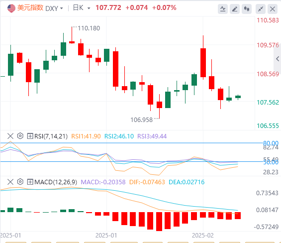 阻力位方面,美元指数可能首先挑战9日均线107.94,然后是14日均线108.03。突破这些水平可能会增强短期价格势头,可能会推动该指数升至三周高点109.80,上次测试是在2月3日。