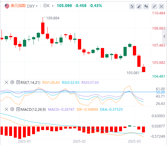 如果数据表现强劲,美元指数可能重新测试每周峰值107.66(2月28日),并进一步挑战2月高点109.88和年初至今峰值110.17。突破这些水平可能为2022年高点114.77铺平道路。相反,如果数据疲软,美元指数可能首先测试2025年底部105.89,随后是2024年12月低点105.42,最终可能下探关键的200天移动平均线105.00。守住这一关键支撑位对于维持看涨势头至关重要。
