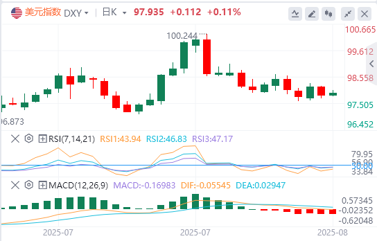 下行方面,美元指数可能会在7月24日创下的六周低点97.11找到初步支撑,随后是下降通道的下边界97.00附近。跌破这一关键支撑区域可能会强化看跌倾向,并给美元指数带来下行压力,使其在7月1日创下的三年低点96.38美元附近徘徊。