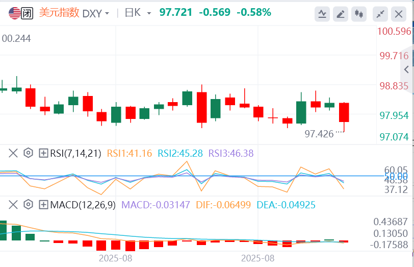 目前,该指数仍被限制在200日简单移动平均线(102.39)和200周简单移动平均线(103.19)以下,保持了整体下行偏向。动量指标也反映了这一观点:相对强弱指数(RSI)已降至约45,显示出看涨能量减弱,而ADX接近11,表明市场没有强劲的趋势。