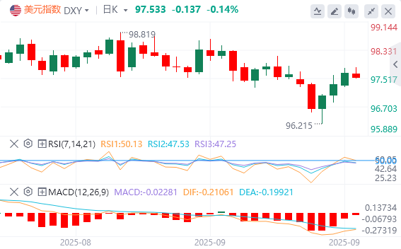 随着美元指数已突破九日指数移动平均线(EMA),短期价格势头正在增强,并可能瞄准50日均线的上行空间。然而,14天相对强弱指数(RSI)仍保持在50水平下方,表明看跌偏见仍在发挥作用。