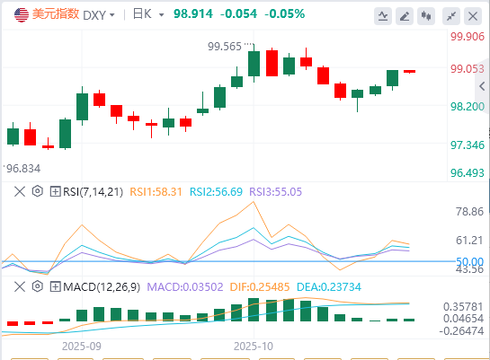 只要该指数保持在50日移动平均线上方,测试99.563阻力位的可能性似乎越来越大。更广泛的风险偏好和全球利差在短期内继续有利于美元走强。