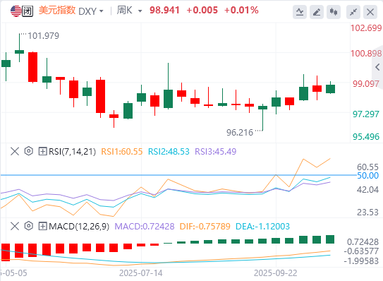 综上所述,本周美元指数在多种因素交织下呈现出复杂走势,未来走向仍充满不确定性,市场将密切关注地缘政治、贸易局势、美联储政策以及美国政府停摆等关键因素的发展。