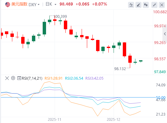 美元指数在周五收盘前略显强硬,但这仍感觉是稳定而非转折。在周三的大幅下跌和周四的后续下滑后,美元曾触及自10月17日以来的最低水平,最终在98.134附近找到下限。买方出现的股价刚好足够,将50%回撤位收回在98.307,帮助指数在周末前继续上涨。