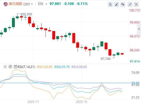 美国联邦储备委员会(Fed)在12月的政策会议上将联邦基金利率下调25个基点(bps),将目标区间调整至3.50%-3.75%。美联储在2025年累计实施了75个基点的降息。市场预计,在劳动力市场降温和通胀缓解的背景下,美国央行2026年至少将降息两次,这可能会对美元相较竞争对手造成压力。