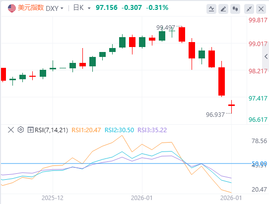 地缘政治因素加剧市场波动。特朗普政府在格陵兰岛主权争议中软化立场,缓解部分地缘风险,但“卖出美国”交易重现,显示政治风险对美元的潜在冲击。外汇市场吸收不确定性后,美元承压显着。