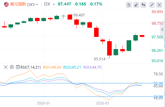 2月3日,周二欧市初盘,美元指数在连续两天上涨后小幅下跌,接近97.50。