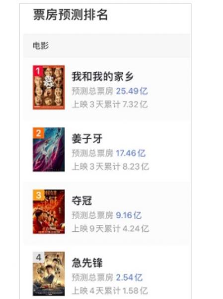 虽然姜子牙蝉联了国庆前两日的票房冠军,但截至发稿,国庆第3天《我和我的家乡》单日实时票房已实现反超,总票房7.32亿元,与《姜子牙》的最新票房差距不足1亿元。