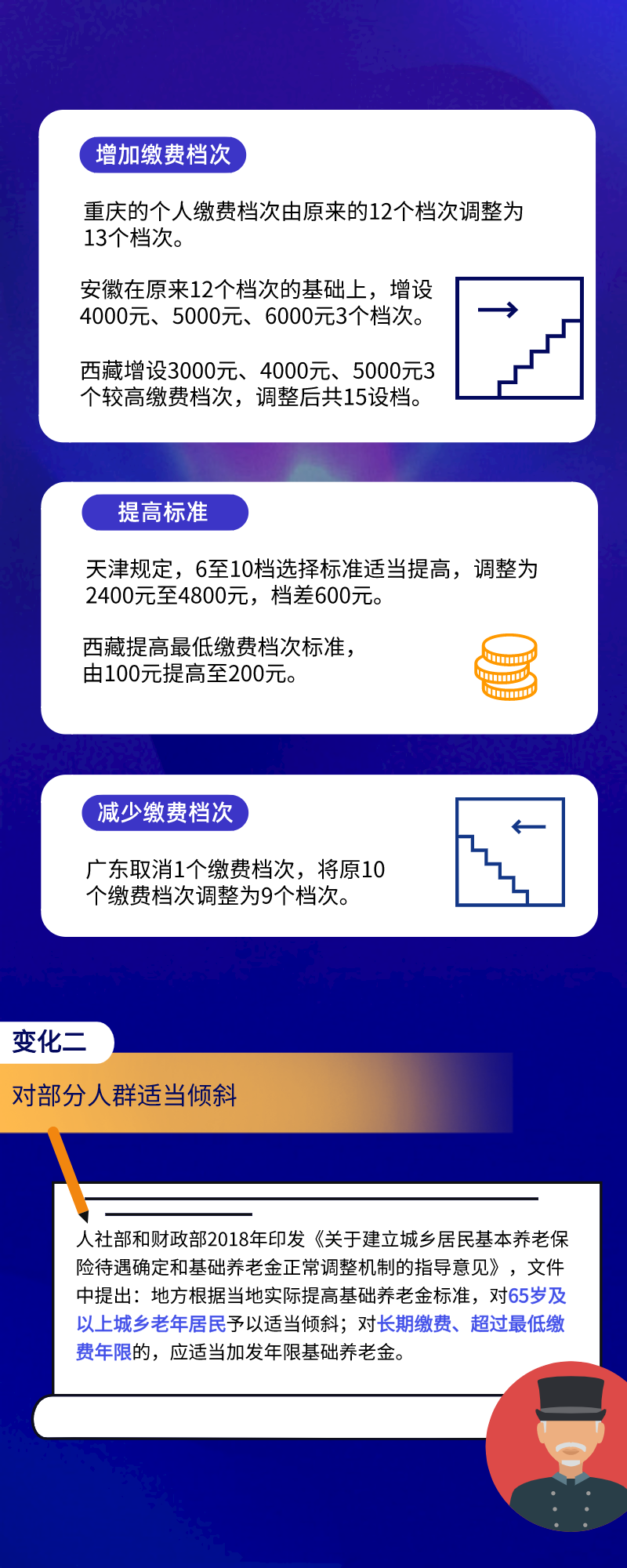 截至目前,北京、广东、浙江、陕西、天津、重庆、安徽、江苏、西藏、内蒙古等省(区、市)陆续公布了城乡居民基本养老保险调整方案,多地调整了个人缴费档次标准,提高了缴费上限。具体有哪些调整?有网友问:等我退休时,养老保险支付能力会不会不足?一起了解下: