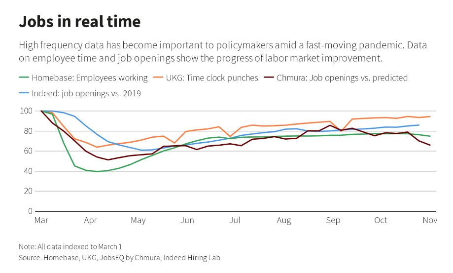 “随着染疫人数大增压制市场与人员流动性,秋季的几个月中经济被明显削弱。虽然就业和需求仍保持正面趋势,但也已非常接近失速速度,”Daco本周写道。