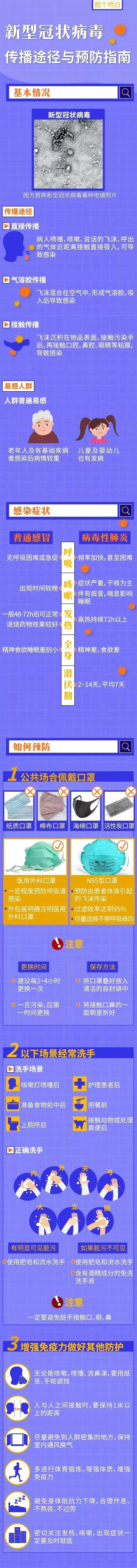 日前,国家卫生健康委发布《新型冠状病毒感染的肺炎诊疗方案(试行第五版)》。其中包括冠状病毒病原学特点、临床特点、病例定义、鉴别诊断、病例的发现与报告、治疗、解除隔离和出院标准、转运原则和医院感染控制等。 有关传播途径、感染症状、注意事项等要点,通过一张图了解一下↓↓↓