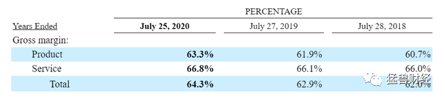 (思科产品和服务的毛利率,来源:思科)