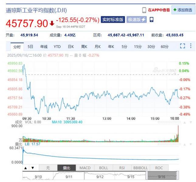 2025年09月17日星期三,以下是由亚汇网整理的昨夜今晨国际财经要闻汇总: 国际股市 一、美股股市:标普500指数下跌0.13%,报6606.76点;道琼斯工业平均指数下跌0.27%,报45757.9点;纳斯达克综合指数下跌0.07%,报22333.96点。甲骨文(ORCL.U)高开低走,收涨1.4%,特斯拉(TLA.U)涨2.8%,英伟达(NVDA