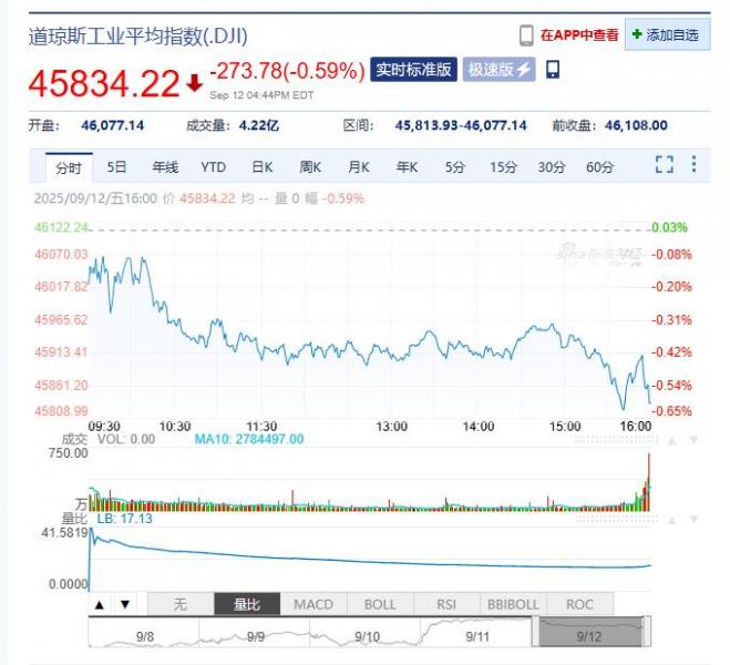 2025年09月15日星期一,以下是由亚汇网整理的昨夜今晨国际财经要闻汇总: 国际股市 一、美股股市:道指跌273.78点,跌幅为0.59%,报45834.22点;纳指涨98.03点,涨幅为0.44%,报22141.10点;标普500指数跌3.18点,跌幅为0.05%,报6584.29点。特斯拉(TLA.U)涨7.36%,甲骨文(ORCL.U)跌超5%,苹果(AAL