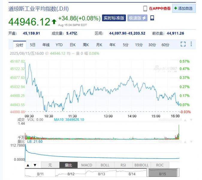 2025年08月18日星期一,以下是由亚汇网整理的昨夜今晨国际财经要闻汇总: 国际股市 一、美股股市:道指涨34.86点,涨幅为0.08%,报44946.12点;纳指跌87.69点,跌幅为0.40%,报21622.98点;标普500指数跌18.74点,跌幅为0.29%,报6449.80点。英特尔(INTC.U)涨2.93%,联合健康(UNH.U)涨近12%。纳斯达克