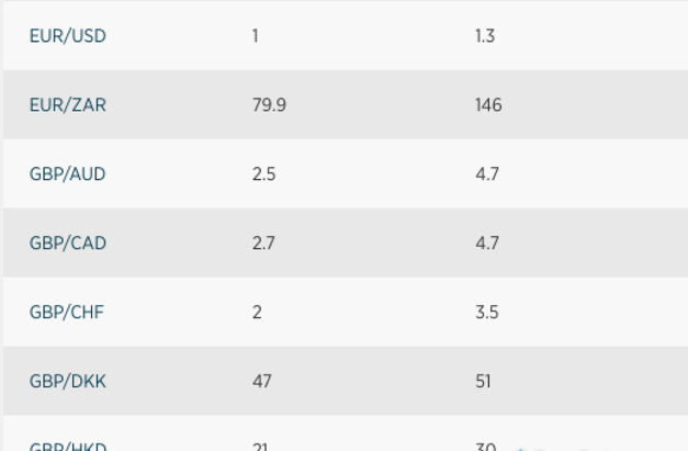 根据嘉盛2019年11月的数据,迷你账户和标准账户的典型点差为1.3个点。下表左列是最小点差,中间列是典型点差。