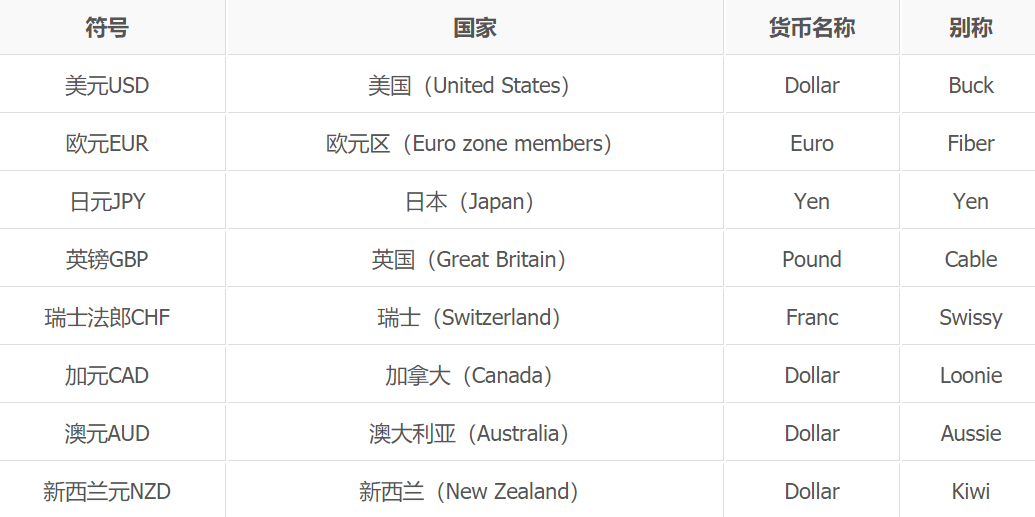 外汇交易中的8种主要货币: