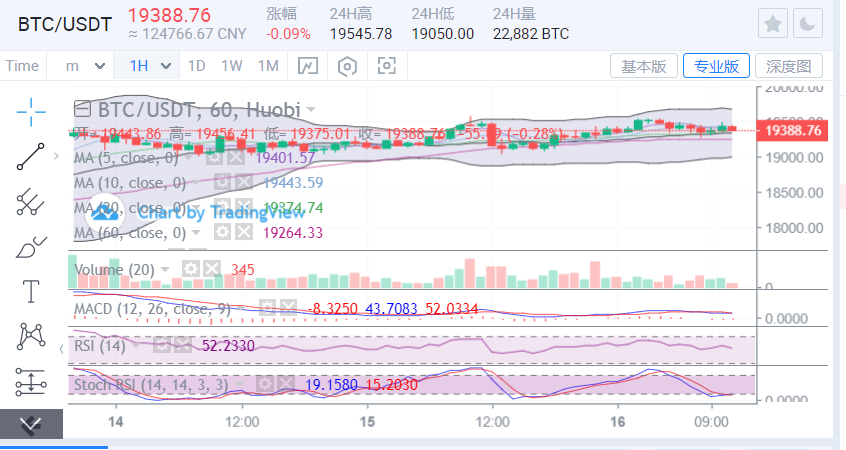 比特币日内行情基本如凌晨分析预期一样,走势再度上行触及19500-19600区域承压回调,且回调力度逐渐减弱,下方支撑在缓慢上移,多头情绪浓重,日内行情有上破阻力试探前期高点的可能。