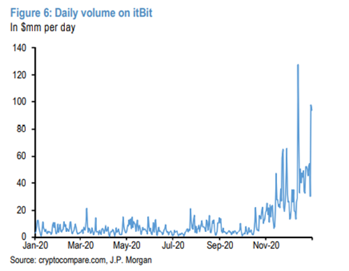 在摩根大通Nikolaos Panigirtzoglou策略团队看来,比特币在过去几周的大幅上涨,使得其定位和估值都面临更大挑战。另外,投机性多头头寸和持有少量比特币散户的增加可能使投机热潮进一步蔓延,将比特币价格推向50000-100000美元。