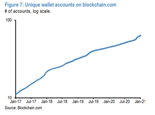 下图为日益增长的比特币账户数量: