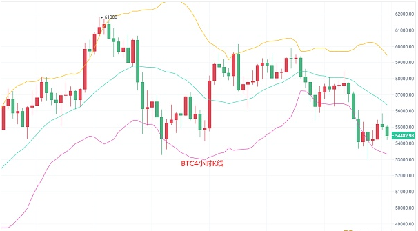 昨日比特币迎来的新一轮洗盘,突破58000支撑直接跌至53000美金,目前处于4小时K线布林带中轨56500和布林带下轨53000区间预计会来回震荡,MACD放量减少以后DIF和DEA已经进入了超低位,KDJ向上发散,移动平均线EMA5走过其它均线以后目前走入到55000美金一下,EMA120算是一个有利支撑点维持在55000关口,虽然关口以破,但是短期内不会距离55000太远,只会在这个关口来回震荡蓄力寻求时机辰逸以55000美金作为中心轴上看55500-55850-56400-57000,下看54500-53850-53000-52500
