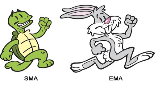 右边的兔子跑得快,就好比EMA。它能够帮助你在趋势开始阶段就抓住最佳入场时机,但是存在蒙受虚假行情欺骗的风险。