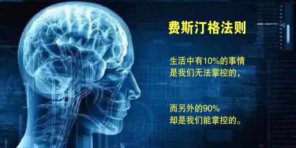 美国社会心理学家费斯汀格(Festinger)有一个很出名的判断,被人们称为“费斯汀格法则”:生活中的10%是由发生在你身上的事情组成,而另外的90%则是由你对所发生的事情如何反应所决定。换言之,生活中有10%的事情是我们无法掌控的,而另外的90%却是我们能掌控的。