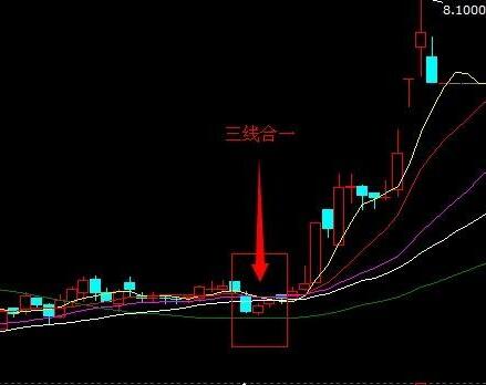 股市中什么是三线合一?股票三线合一是指在MA(均线)图形中,MA5(5日均线)、MA10(10日均线)、MA20(20日均线)出现三线交叉到一点,形成股票MA技术指标的三线合一。