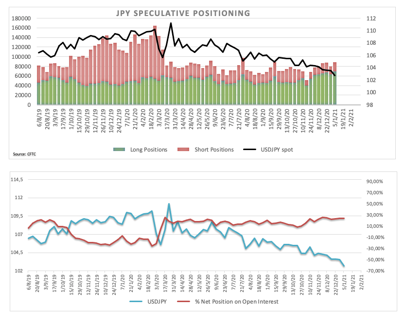 以下是截至1月5日当周CFTC头寸报告的主要内容: 投机者持有的日元净多头头寸升至2016年10月初以来的最高水平。事实上,投资者继续衡量全球超低利率V可能的回流以及再次关注国内资产。 美元净空头头寸上升至2020年3月中旬以来的最高水平,因为在拜登政府下美国扩大财政刺激的可能性增加,疫苗持续发放且全球经济有望强