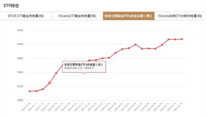 根据黄金信息网站对全球8大主要黄金TF的监控数据显示,截至2020年6月16日,全球8大黄金TF持仓总量为1887.356吨,与上一交易日增加0.51吨。