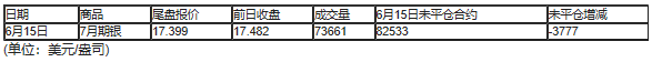 截至北京时间04:59,6月15日纽约商品交易所(COX)2020年7月期银成交量为73661,6月15日未平仓合约减少3777手。