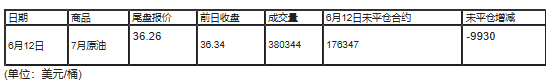 截至北京时间04:59,6月12日纽约交易所(NYX)2020年7月期原油成交量为380344,6月12日未平仓合约减少9930手。