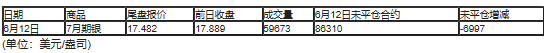 截至北京时间04:59,6月12日纽约商品交易所(COX)2020年7月期银成交量为59673,6月12日未平仓合约减少6997手。