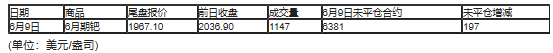 截至北京时间04:59,6月9日纽约商品交易所(NYX)2020年9月期钯成交量为1147,6月9日NYX9月期钯未平合约增加197手。