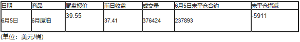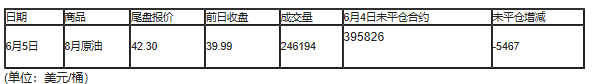 截至北京时间04:59,6月5日纽约交易所(NYX)2020年7月期原油成交量为376424,6月5日未平仓合约减少5911手。