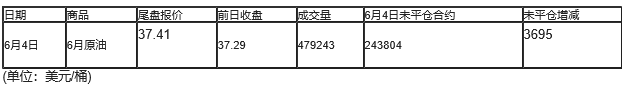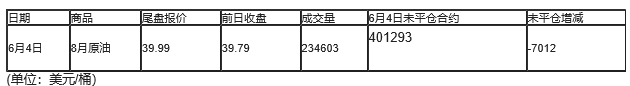截至北京时间05:15,6月4日伦敦洲际交易所(IC)2020年8月原油成交量为234603,布伦特期货原油6月4日未平仓合约减少7012手。
