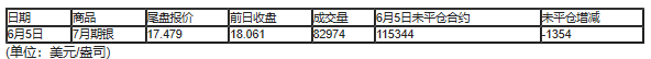 截至北京时间04:59,6月5日纽约商品交易所(COX)2020年7月期银成交量为82974,6月5日未平仓合约减少1354手。