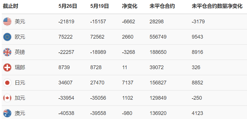 美国商品期货交易委员会(CFTC)最新公布截止5月26日当周COX黄金期货和期权分类持仓报告: 合约单位:100金衡盎司总持仓量:903115 -------基金--------------商业--------总计----投机头寸 多头空头套利多头空头多头空头多头空头 306857532132443192875345787888387108763206440526795 较5月19日当周总持仓