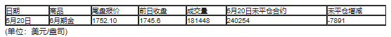 截至北京时间04:59,5月20日纽约商品交易所(COX)6月期金成交量为181448,5月20日未平仓合约减少7891手。
