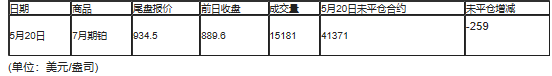截至北京时间04:59,5月20日纽约商品交易所(NYX)2020年7月期铂成交量为15181,5月20日未平仓合约减少259手。