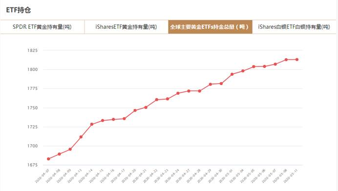 根据黄金信息网站对全球8大主要黄金TF的监控数据显示,截至2020年5月11日,全球8大黄金TF持仓总量为1812.973吨,与上一交易日增加0.126吨。