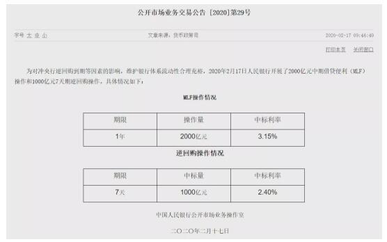 根据央行公告,此次1年期MLF操作中标利率为3.15%,上次为3.25%。