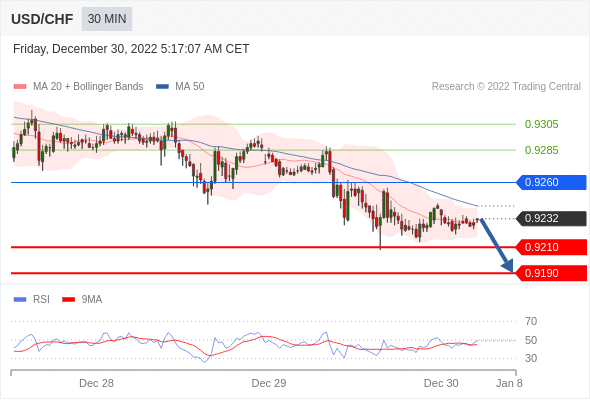 美元/瑞郎汇率今日分析:在 0.9260 之下,看跌,目标价位为 0.9210 ,然后为 0.9190 。在 0.9260 上,看涨,目标价位定在 0.9285 ,然后为 0.9305。