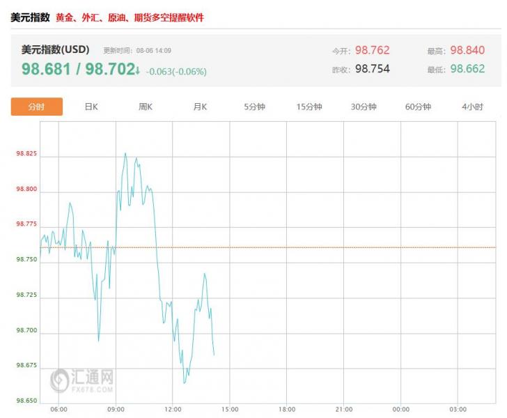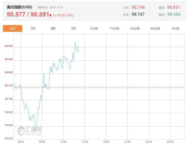 周二(8月5日)亚盘早盘,美元指数最新价报98.891,涨幅0.14%,开盘价为98.75。美联储避免发出即将降息的信号,迫使投资者大幅下调对下次政策会议降息的预期。 美联储最新动态一览 联邦公开市场委员会上周三以分裂的投票结果维持利率不变,几乎没有给出何时可能降低借贷成本的迹象。美联储基准隔夜政策