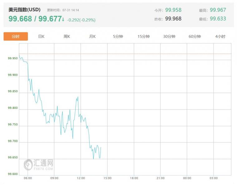 周四(7月31日)亚盘早盘,美元指数最新价报99.677,跌幅0.29%,开盘价为99.96。昨日,美国联邦储备委员会结束为期两天的货币政策会议,宣布将联邦基金利率目标区间维持在4.25%至4.50%之间不变。 美联储最新动态一览 面临特朗普政府不断要求降息的压力,这是美联储连续第五次决定维持利率不变。观察人士认