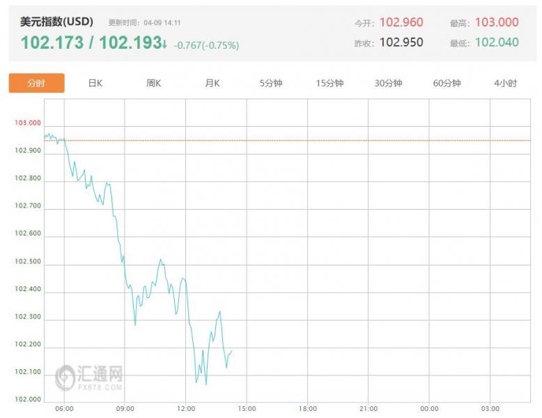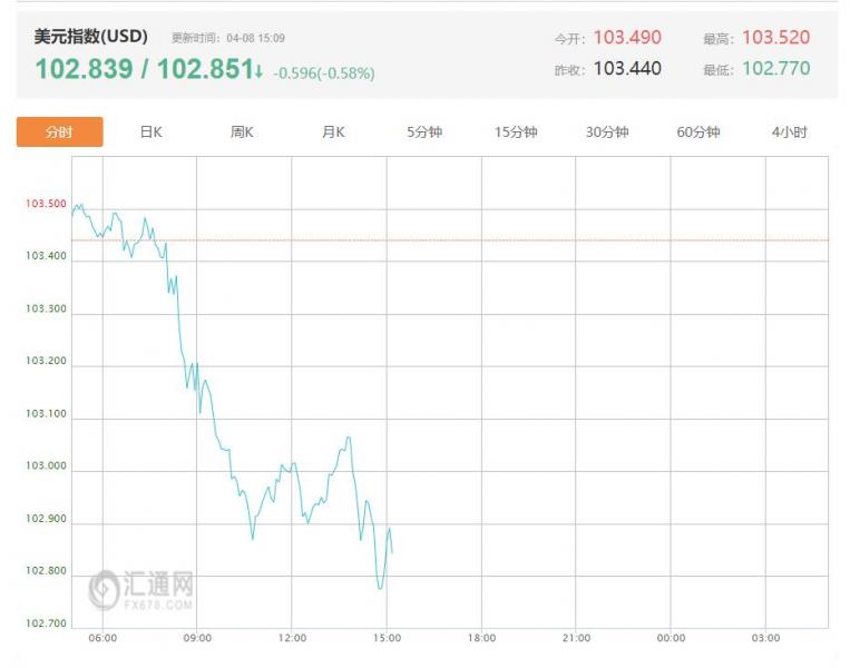 周二(4月8日)亚盘早盘,美元指数最新价报102.851,跌幅0.58%,开盘价为103.46。美联储下一次会议定于5月6日至7日举行,期货市场曾将该会议降息几率提至50%左右,但鲍威尔讲话后几率降至30%。 美联储最新动态一览 市场参与者期待美联储通过降息安抚市场,即所谓的Fdut,但周五预期落空,导致股市走低。vr