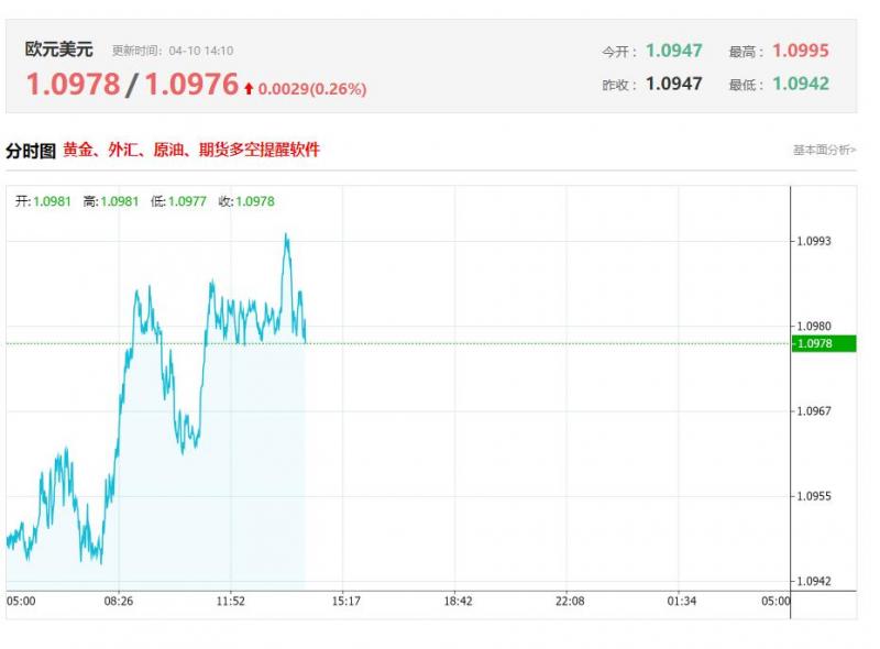 周四(4月10日)亚盘早盘,欧元兑美元上涨,目前交投于1.09附近,截止北京时间14:10分,欧元兑美元报价1.0986,涨幅0.26%,上一交易日欧元兑美元收盘为1.0949。潘森宏观的分析师ClauVitn和laniDbono认为,在经济不确定性增加的情况下,欧洲央行可能会在本月的会议上选择保持谨慎并维持利率不变。 欧洲央行最新动