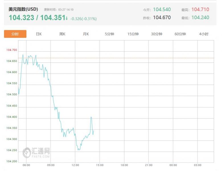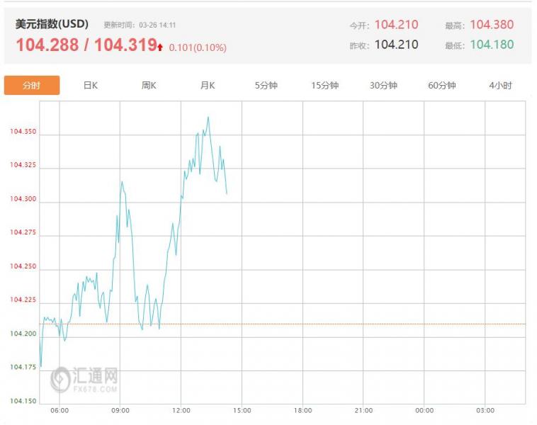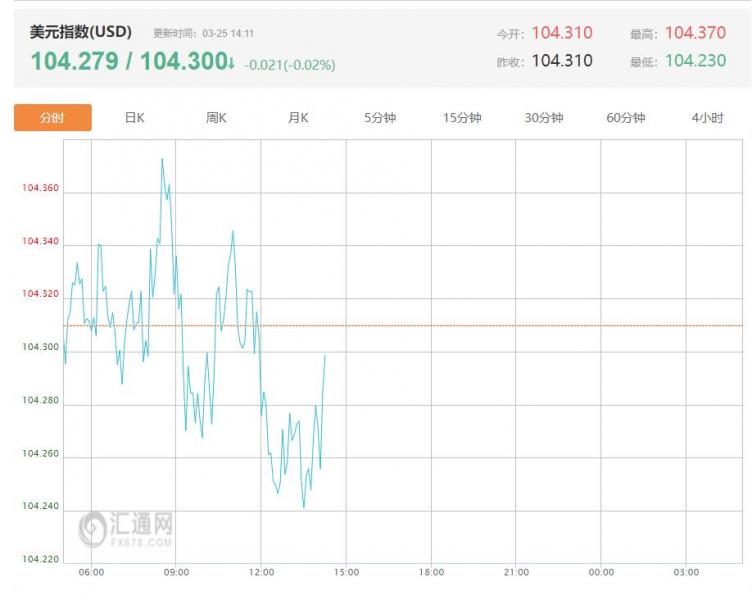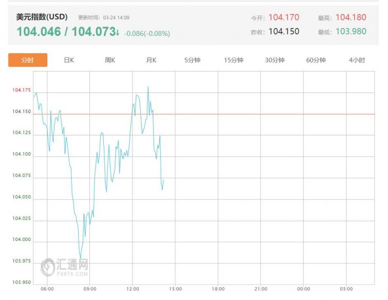 周一(3月24日)亚盘早盘,美元指数最新价报104.073,跌幅0.08%,开盘价为104.19。美联储理事ChritohrWallr上周五表示,他反对本周美国央行会议决定放缓证券持仓缩减速度,因为银行系统中的储备水平仍然充足。 美联储最新动态一览 Wallr在声明中解释其反对意见时称,缩减美联储资产负债表是货币政策正常化