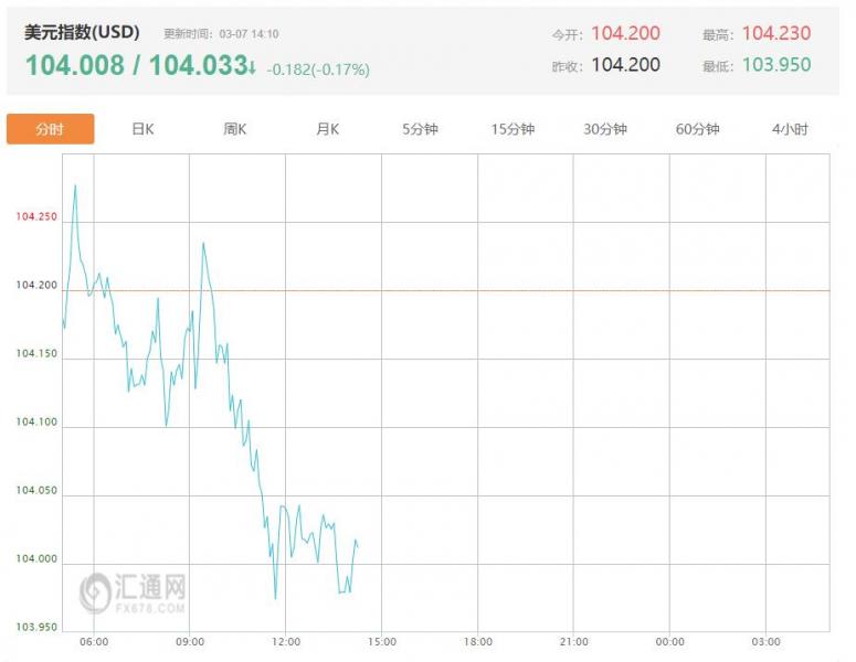 周四(3月6日)亚盘早盘,美元指数最新价报104.154,跌幅0.018%,开盘价为104.34。近期,美联储官员的言论总体偏向鹰派,多位官员表示由于通胀停滞和不确定性增加,应维持利率稳定。 美联储最新动态一览 芝加哥联储主席古尔斯比(FOC投票成员)认为应采取“观望”态度,直到对关税、移民、联邦支出削减等